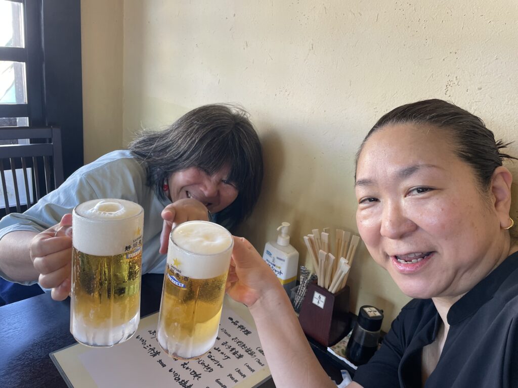 アフターダイブは…お決まりの…かんぱーーいっ🍻海の時より嬉しそうな顔してるのなんでですか⁉️😂