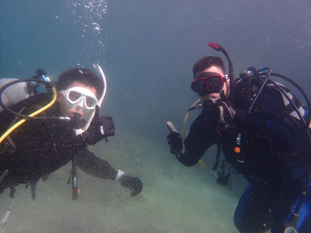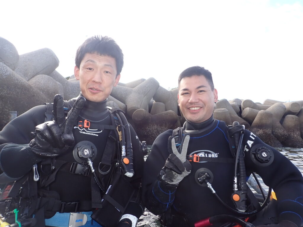 大瀬フィンチーム羨ましい〜、、、横目に👀がっつり講習チーム!オープンウォーターコースまっちゃんとインストラクター実習生のズッキー💪がっつり講習ダイビング!
