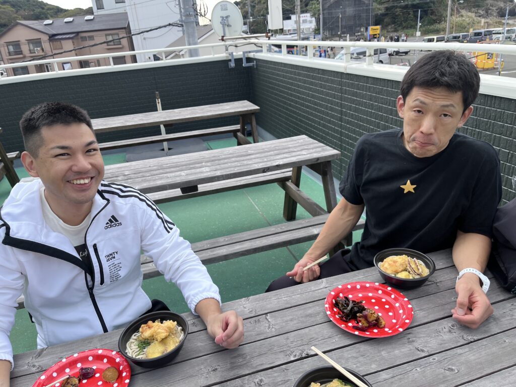 そしてお昼ご飯は城ヶ島サービスさんの焼き芋祭り便乗でうどん!天ぷら!焼き芋🍠頂きました。