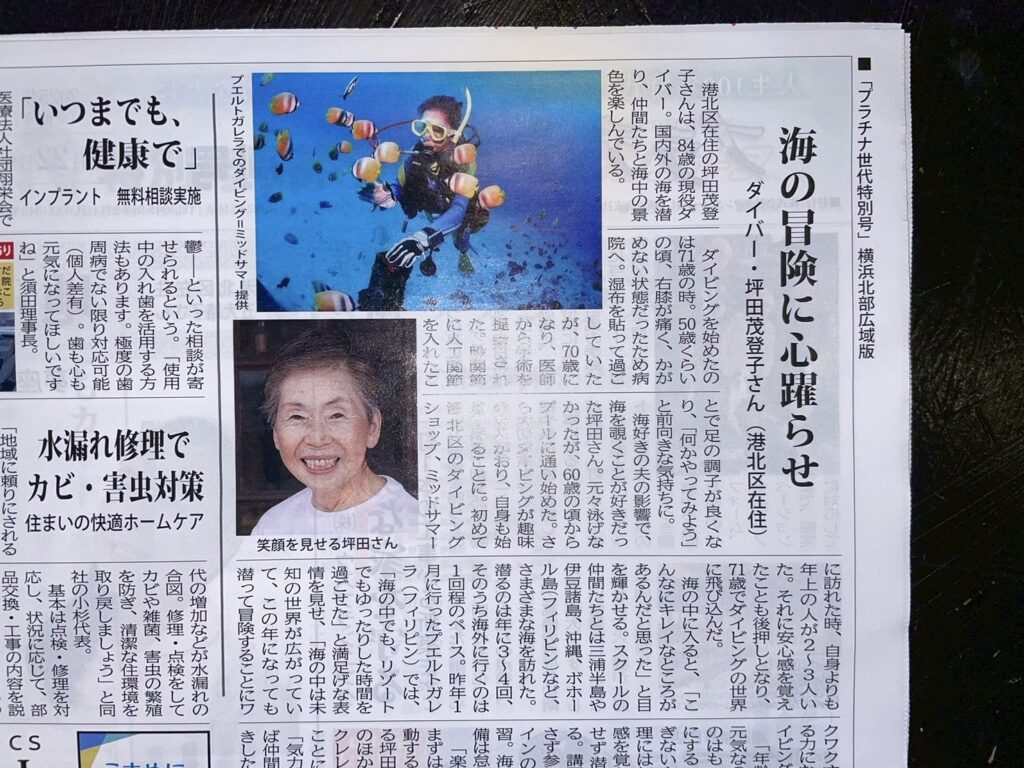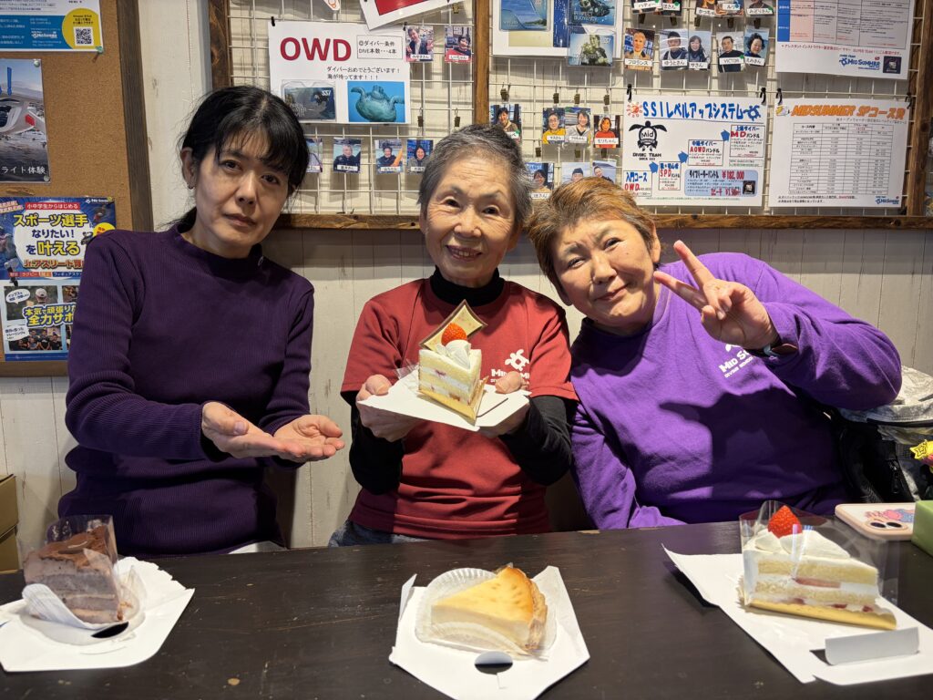 坪ちゃんHappyBirthday🎉✨️ 公開済み: 2025年12月3日更新: 2025年12月3日作成者: ミッドサマーカテゴリー: シニアダイバー楽楽会体験記, ミッドサマー日記, 頑張れシニアダイバー 本日はミッドNo.1の元気印‼️坪ちゃん85歳の誕生日でした‼️坪ちゃんおめでと〜💐 今日も元気に100トレでご来店。 ささやかなプレゼントですが、ケーキも一緒に食べました♪ 今年も元気に伊豆や本栖湖に潜り、 10月にはコモドドラゴンに会いたい!とコモドツアーで200本記念💪 更にはタウンニュースにまで載って、坪ちゃんから元気を貰った方たちが何人もミッドに足を運んでくれました☺️ 今年の最高殊勲選手といっても過言ではないでしょー🔥85歳も坪ちゃんスマイル全開でお願いしますね😆 共有:TwitterFacebookPocket 関連記事 ミッドの誇り! ミッドサマーは100歳現役ダイバー育成を目標💪 60歳以上27人 80歳以上6人が元気にダイビング楽しんでます! 80歳以上のダイバーが海に潜るのはアスリートが試合に臨むのと同じで日々の体力つくり、コンデ […] 共有:TwitterFacebookPocket 公開済み: 2022年8月14日更新: 2022年8月14日作成者: ミッドサマーカテゴリー: シニアダイバー楽楽会体験記, ミッドサマー日記, 頑張れシニアダイバー