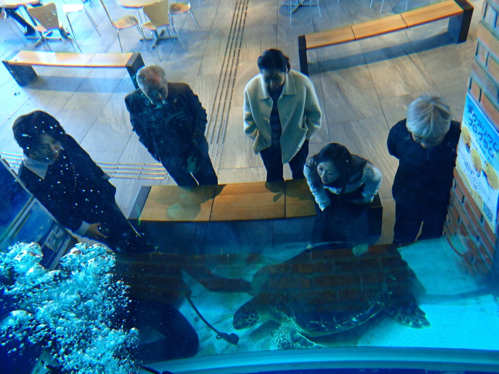 大型複合施設の中にあるのでギャラリーも沢山…物珍しいのかダイバーは超人気者です😂